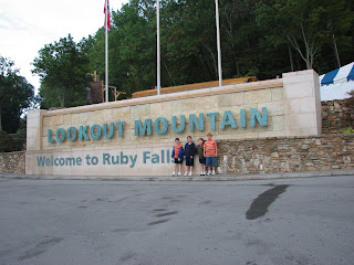 We finished up our vacation today with the basic See Rock City package. The kids loved Rock City, although it rained a bit while we were there and for the most part we all walked around in matching bright yellow garbage bag ponchos - complimentary, no less.